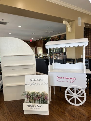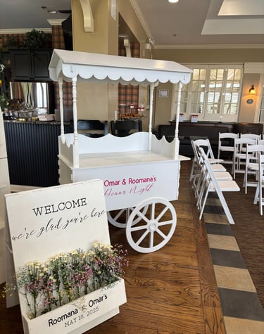 Add a personal touch to your sweet cart experience with our custom lettering service, available for just an additional $25. Elevate your event or celebration by imprinting a name, message, or special date onto your sweet cart, making it truly one-of-a-kind.
