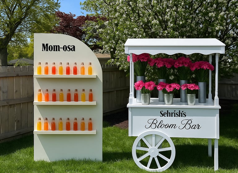 This bundle includes a Flower Cart and Sweet Cart, complete with custom lettering for a personalized touch.